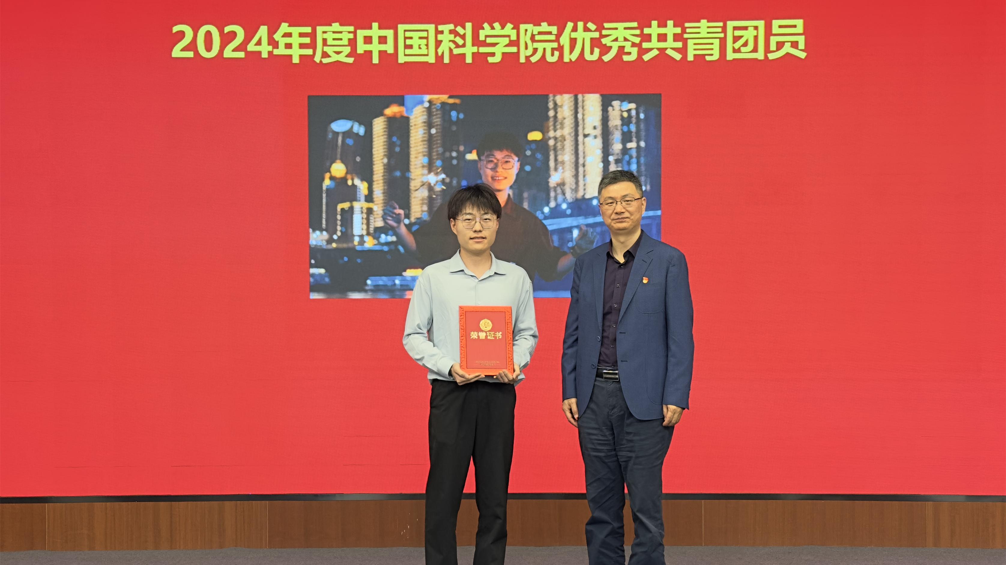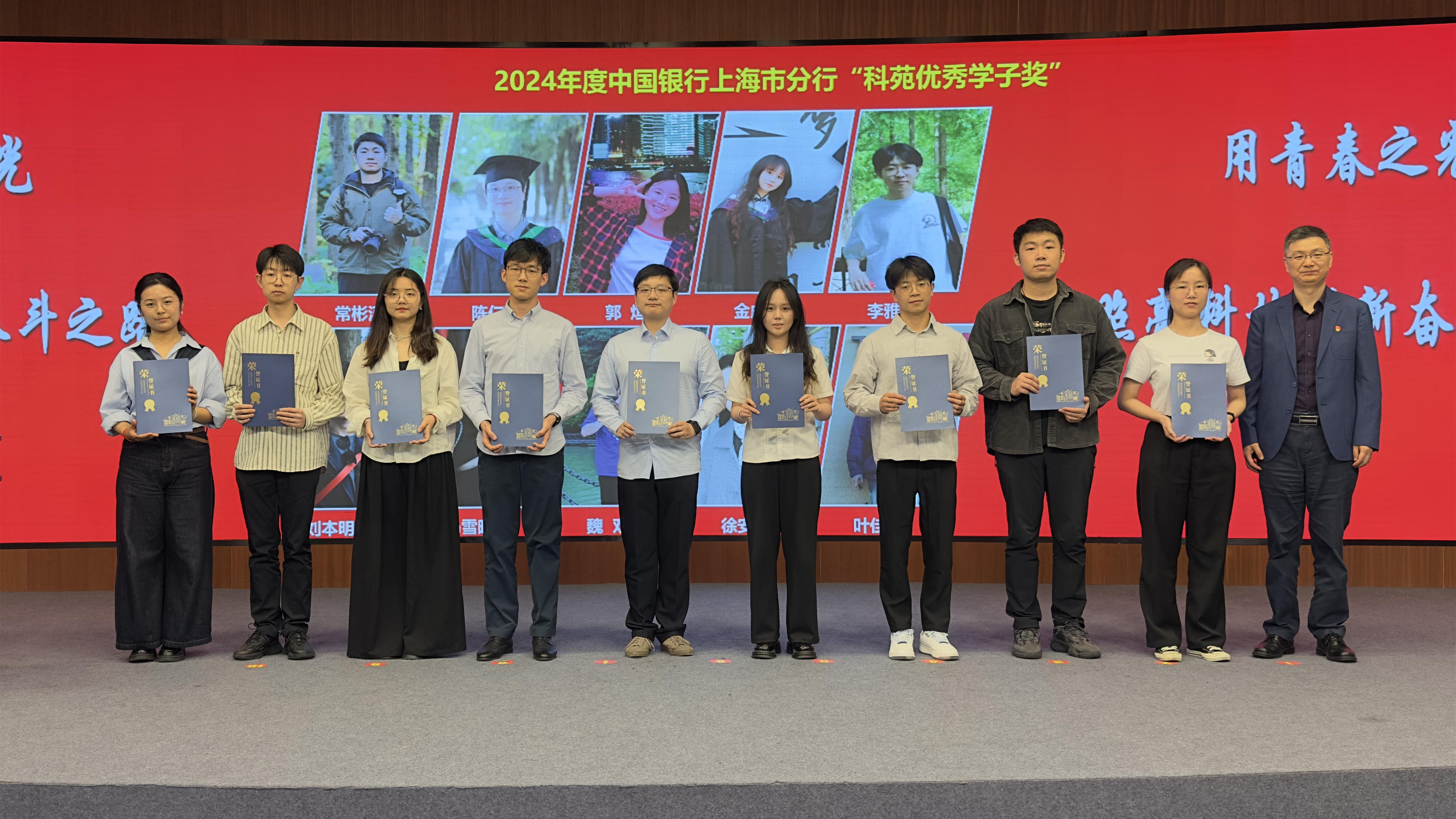 ????瞿榮輝為獲得“中國科學院五四紅旗團委”、“中國科學院優秀共青團員”、“中國科學院上海分院五四青年突擊隊”、中國銀行上海市分行“科苑優秀學子”等榮譽稱號的集體和個人頒發榮譽證書。