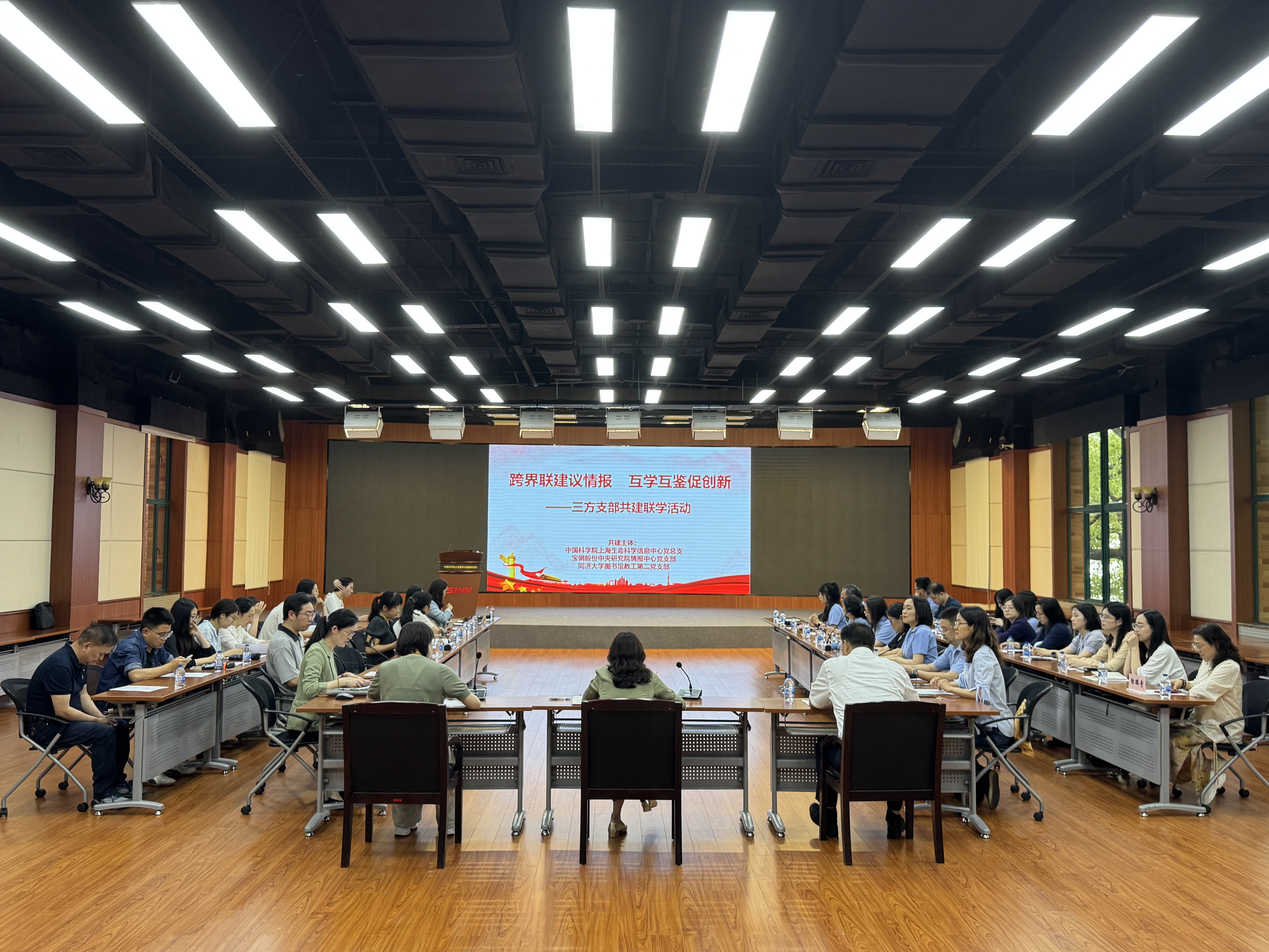 為提高支部黨員思想站位,增強業務能力,6月13日下午,中國科學院上海營養與健康研究所信息中心黨總支、寶鋼股份中央研究院情報中心黨支部、同濟大學圖書館教工第二黨支部在信息中心明德廳聯合舉辦了主題為“跨界聯建議情報 互學互鑒促創新”的共建聯學活動,上海圖書館(上海科學技術情報研究所)協調輔導處黨支部列席參加此次活動。活動吸引了40余名黨員同志參與。與會單位以黨建為紐帶,深入貫徹中央八項規定精神學習教育,聚焦科技情報賦能創新發展交流工作思路與實踐經驗。信息中心黨總支書記熊燕、寶鋼股份中央研究院情報中心主任陳秋建等出席此次活動?;顒佑尚畔⒅行牡诙h支部承辦,黨總支副書記沈東婧主持。