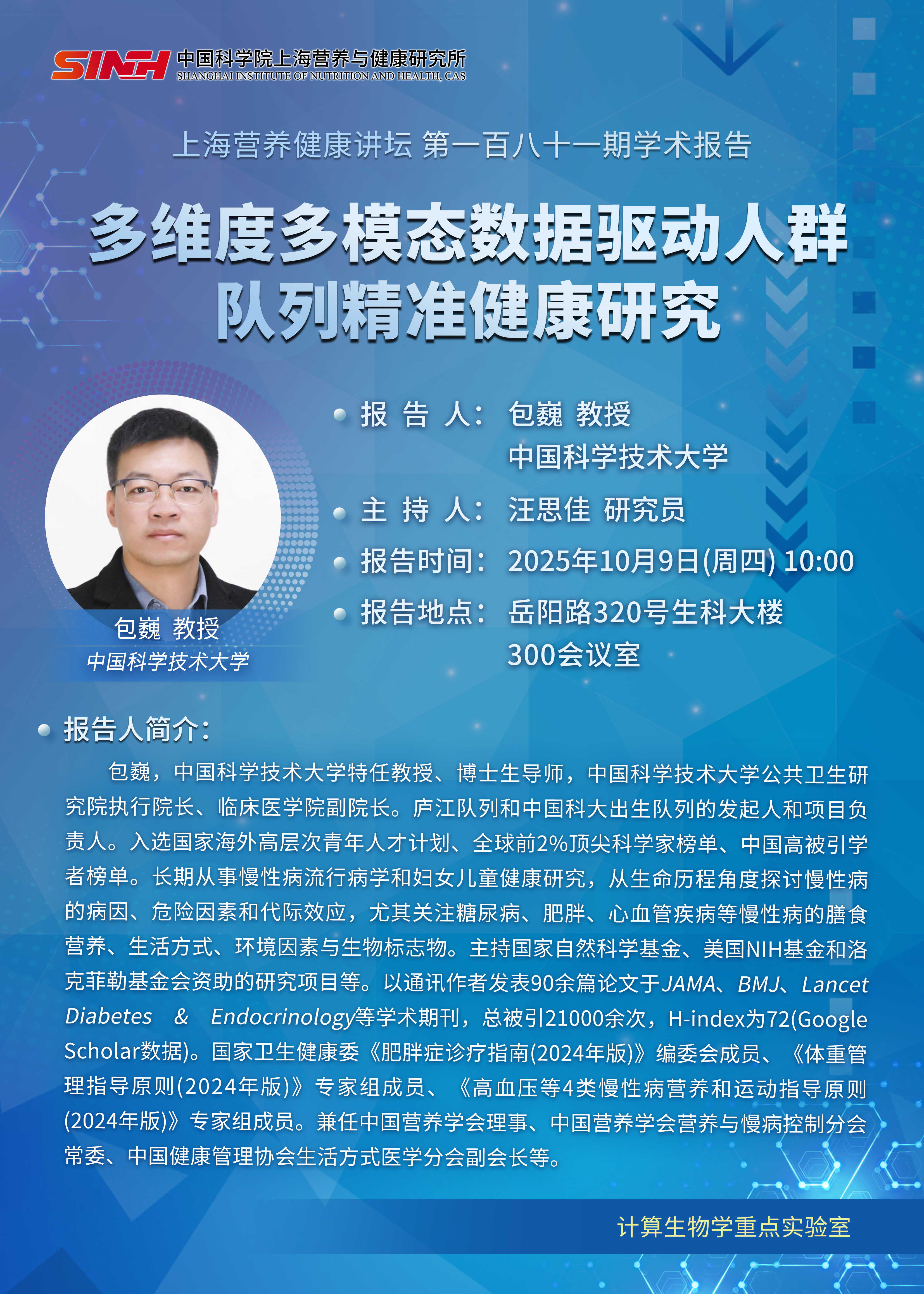 10月9日|多維度多模態數據驅動人群隊列精準健康研究-上海營養健康講壇