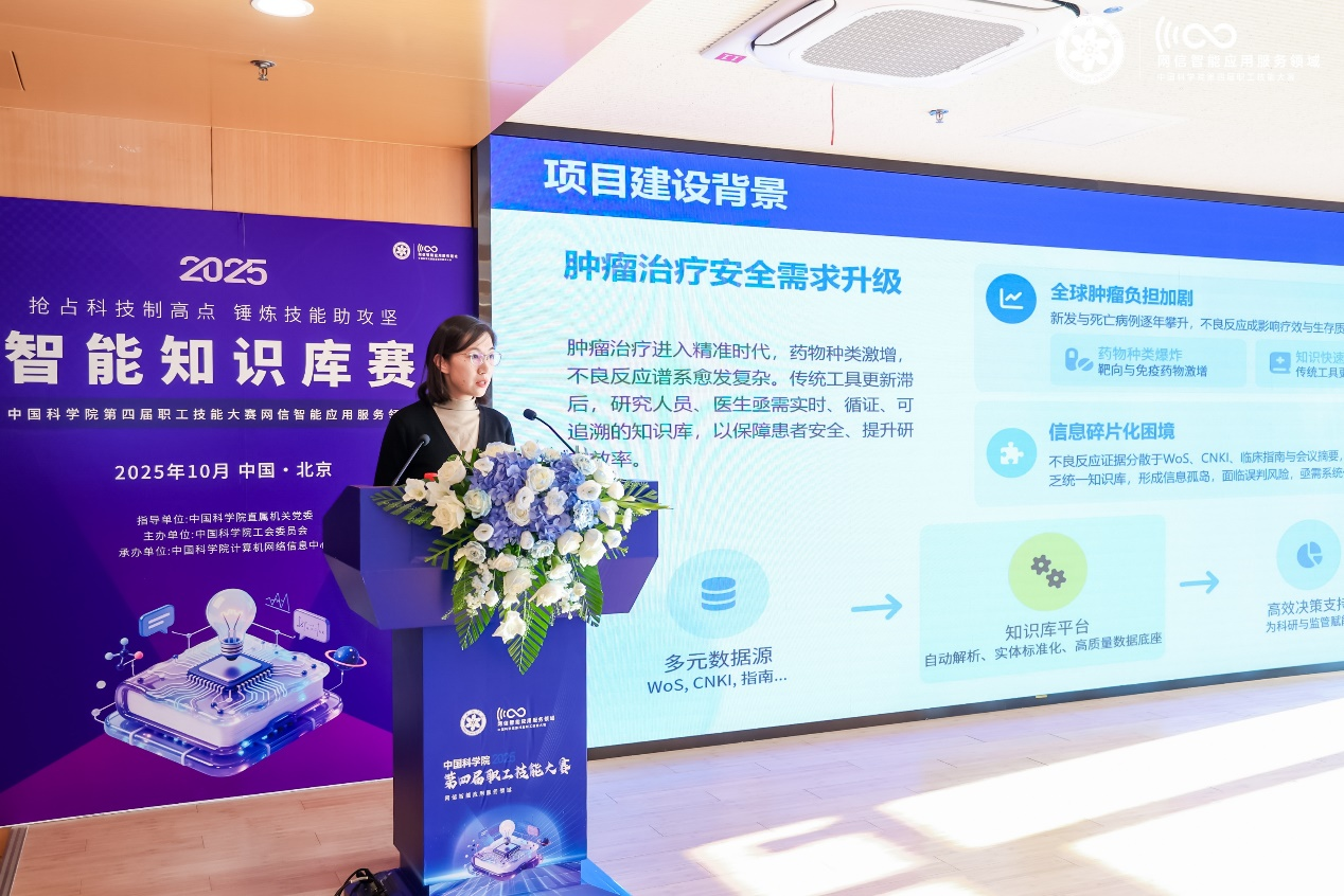 經過初賽階段層層篩選,營養與健康所信息中心數據資源中心副主任姚遠在決賽中作了項目路演、技能實操等多輪展示,憑借項目的創新性、技術成熟度和團隊表現脫穎而出,榮獲網信智能應用服務領域智能知識庫賽道三等獎。