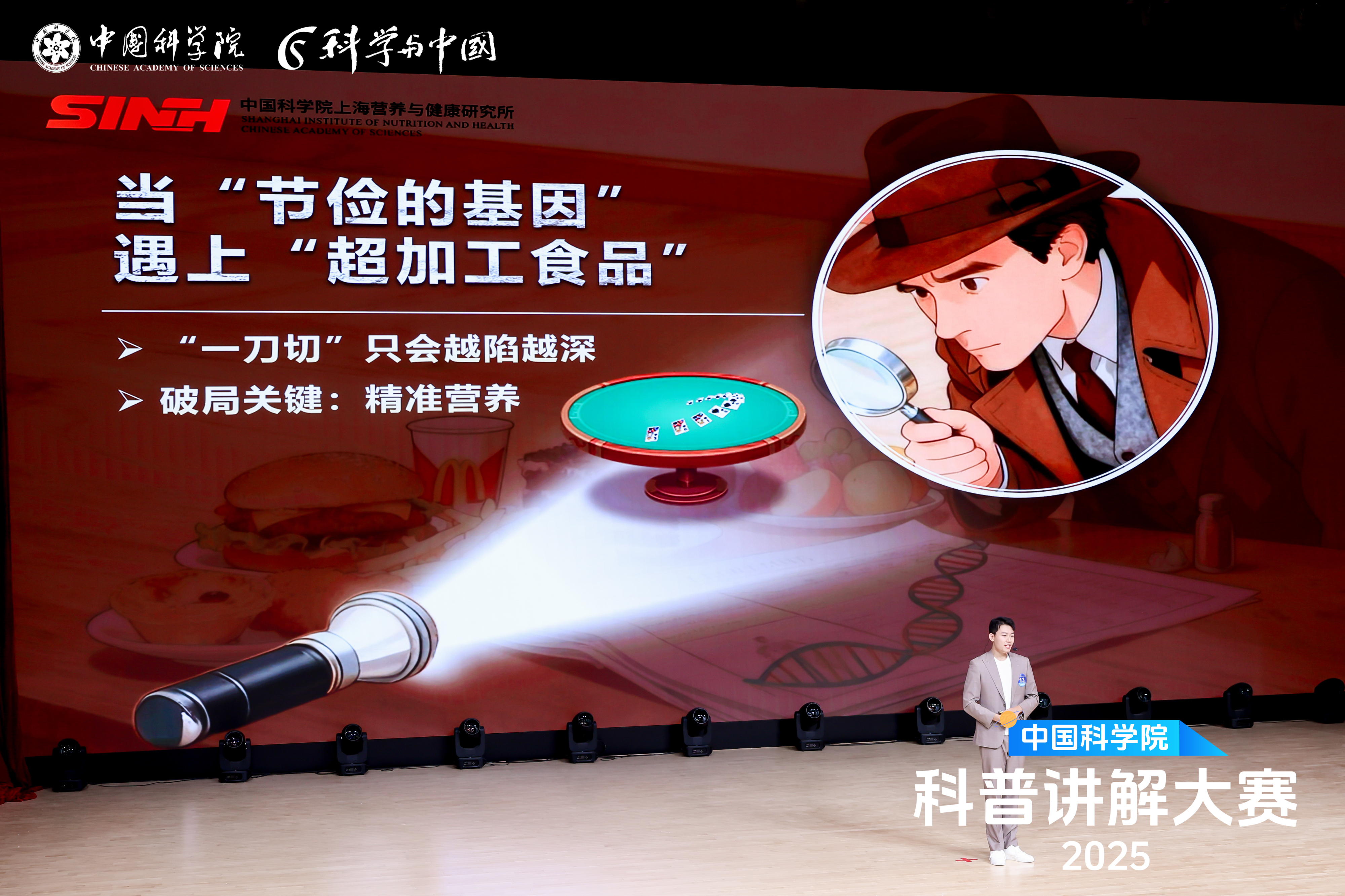 黃鈺琦在《精準營養破解肥胖迷局》中從公眾關心的“減肥難題”出發,化身“精準營養”科學偵探,探秘“節儉基因”與現代“超加工食品”的碰撞,介紹了基因測序、代謝艙等精準營養技術“王牌”,打破“一刀切”的減肥誤區。