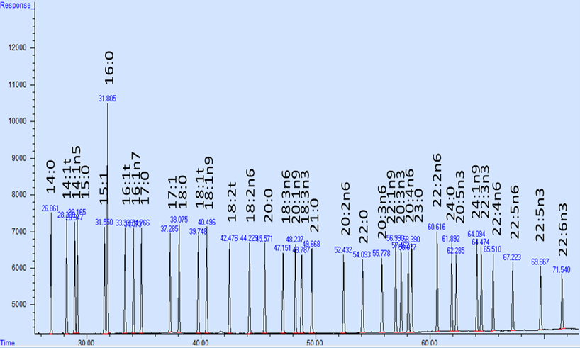 ????圖3. 30多種中長鏈脂肪酸標準品譜圖